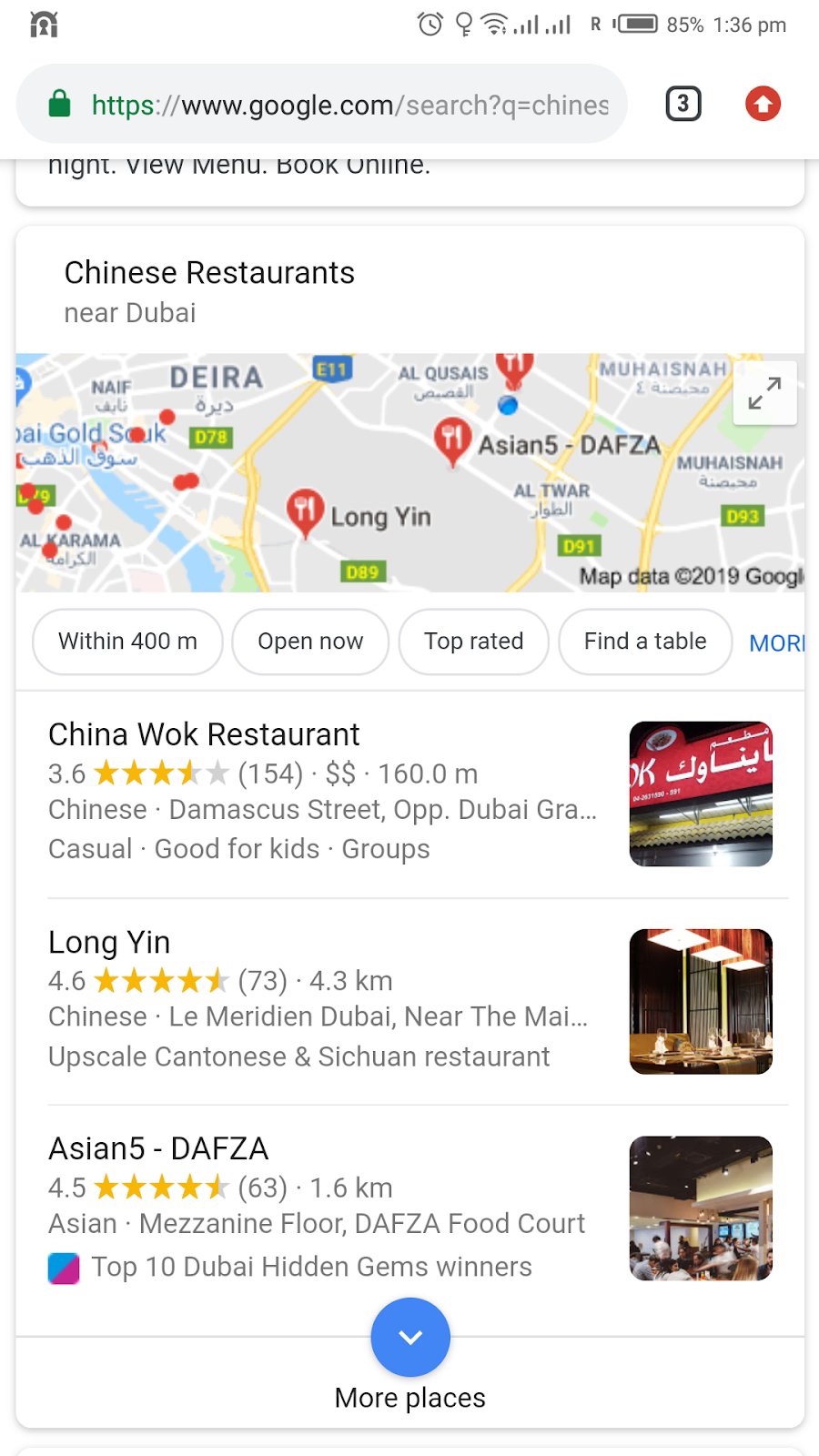Well, I took my phone, Google searched “Chinese Restaurants Around me” and I did this with my phone Location switched on.
